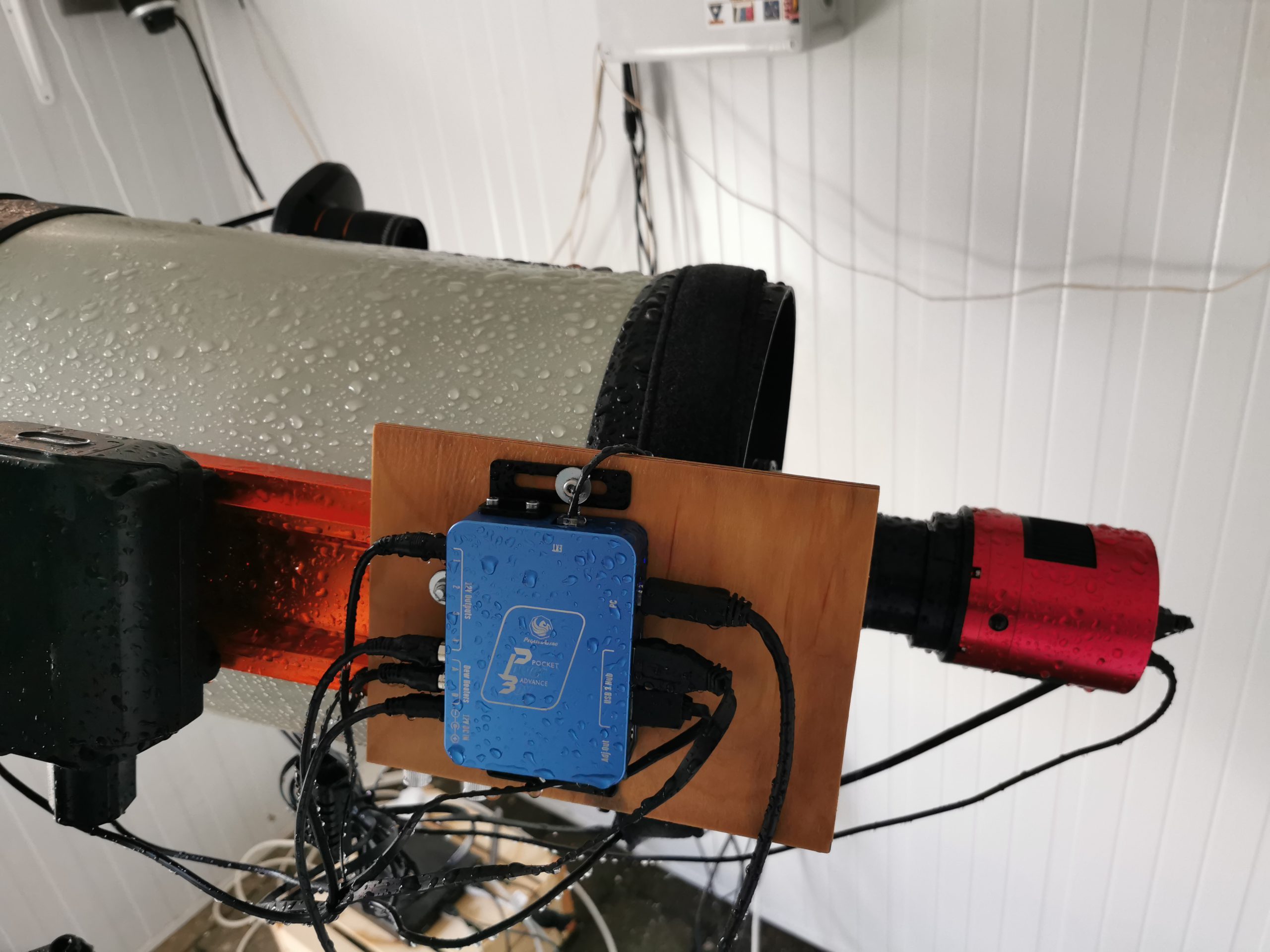 Nach einigen Tagen begann ich alles auszuprobieren ob es noch funktionierte. Sogar die Powerbox (wie auch die Kamera, Flatfield-Generator, usw.) welche am Laufen als sie nass wurden, funktionierten wieder einwandfrei.